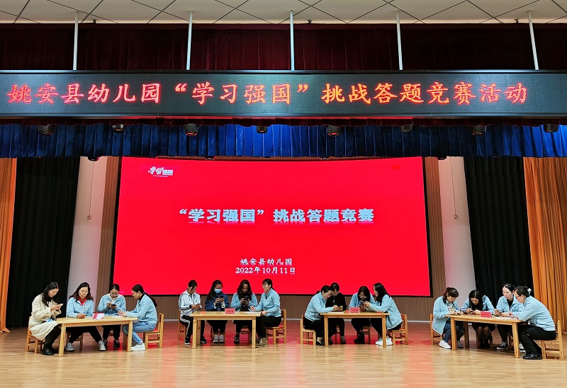 2022年10月11日姚安县幼儿园在园内组织开展以“喜迎党的二十大 学习强国伴我行”为主题的“学习强国”挑战答题竞赛活动。