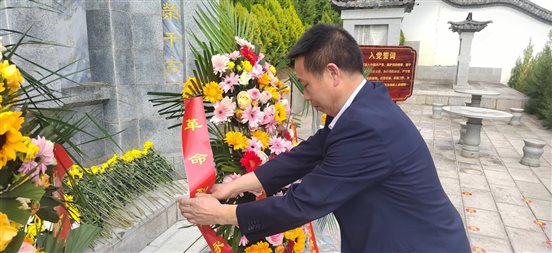 随后,党员们怀着崇敬的心情来到赵祚传烈士陵园,在赵祚传烈士墓前肃立、敬献花篮、鲜花,整理缎带、集体三鞠躬,寄托无限敬仰和思念之情。