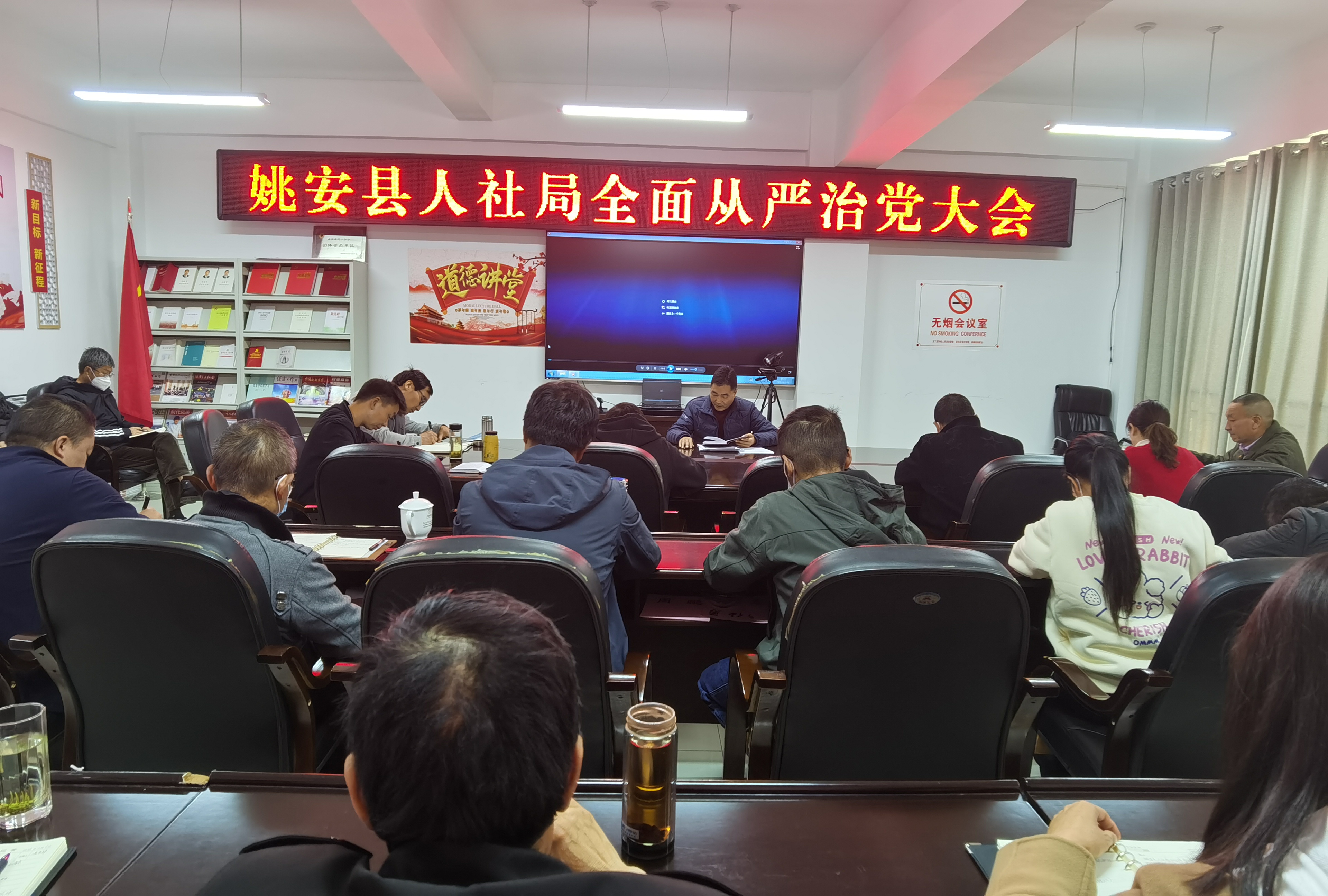 2023年,姚安县人社局围绕政治、思想、组织、纪律、作风、党风廉政建设及精神文明建设,“四抓”推动全面从严治党,实现“四个提升”。
