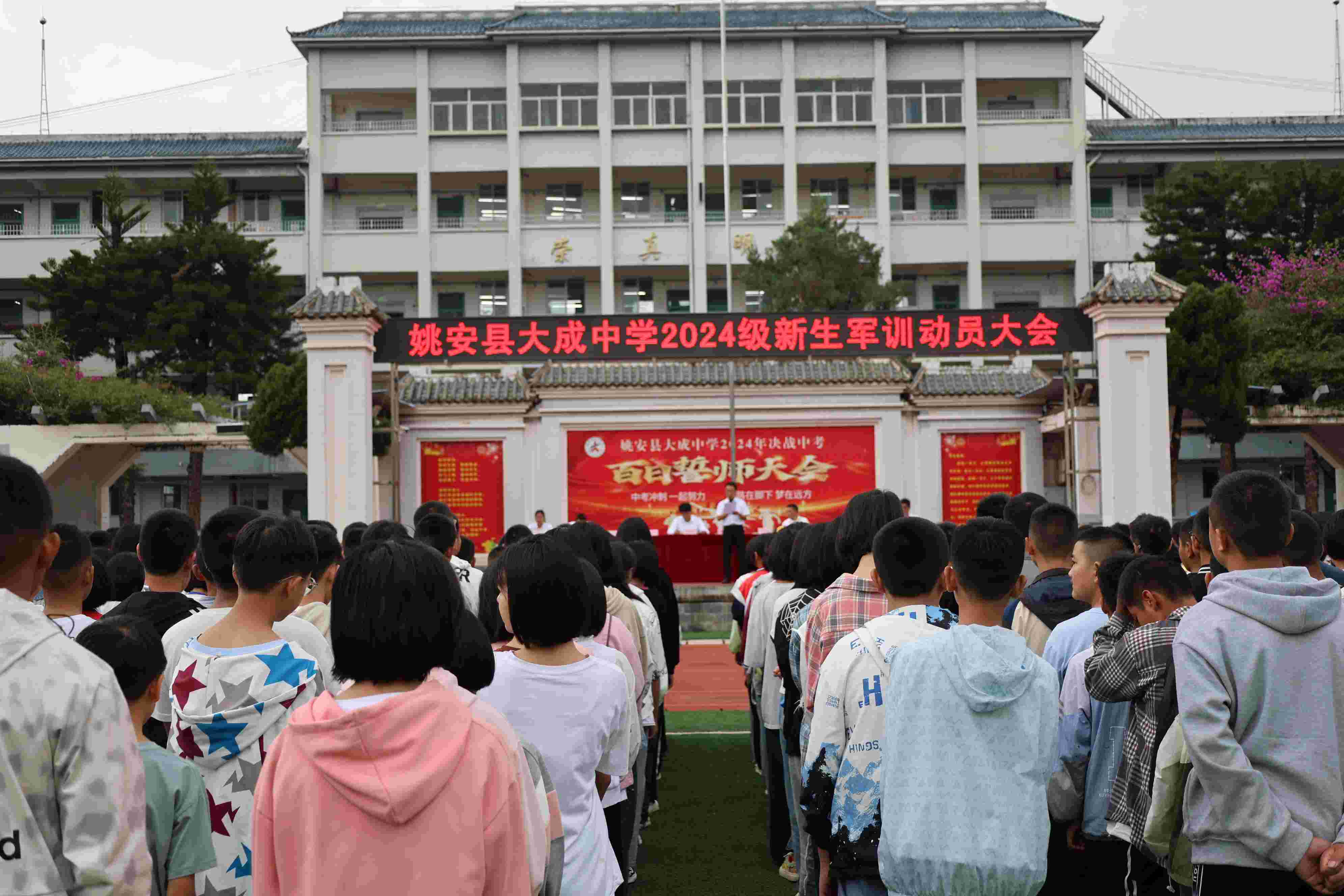 为增强初中学生纪律意识、效率意识、责任意识、国防意识,培养他们自立能力、团队精神、树立总体国家安全观。经姚安县人民武装部军事科、姚安县教育体育局批准,2024年9月2日至6日,由县人民武装部军事科委派的8名教官,对大成中学2024级16个班700余名新生开展了为期一周的军训。