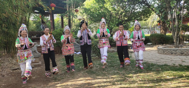 葫芦笙被称为“彝族乐器之王”,是彝族群众日常生活、生产劳动、逢年过节、丧葬礼仪和婚礼中不可缺少的传统乐器,其制作技艺主要流传于楚雄市、大姚县、姚安县、永仁县一带。省级代表性传承人郭自林讲授了彝族葫芦笙制作技艺。在非遗公开课的尾声代表性传承人们和主持人为大家共同展示了彝族葫芦笙舞,非遗公开课在热闹的葫芦笙舞中圆满结束。