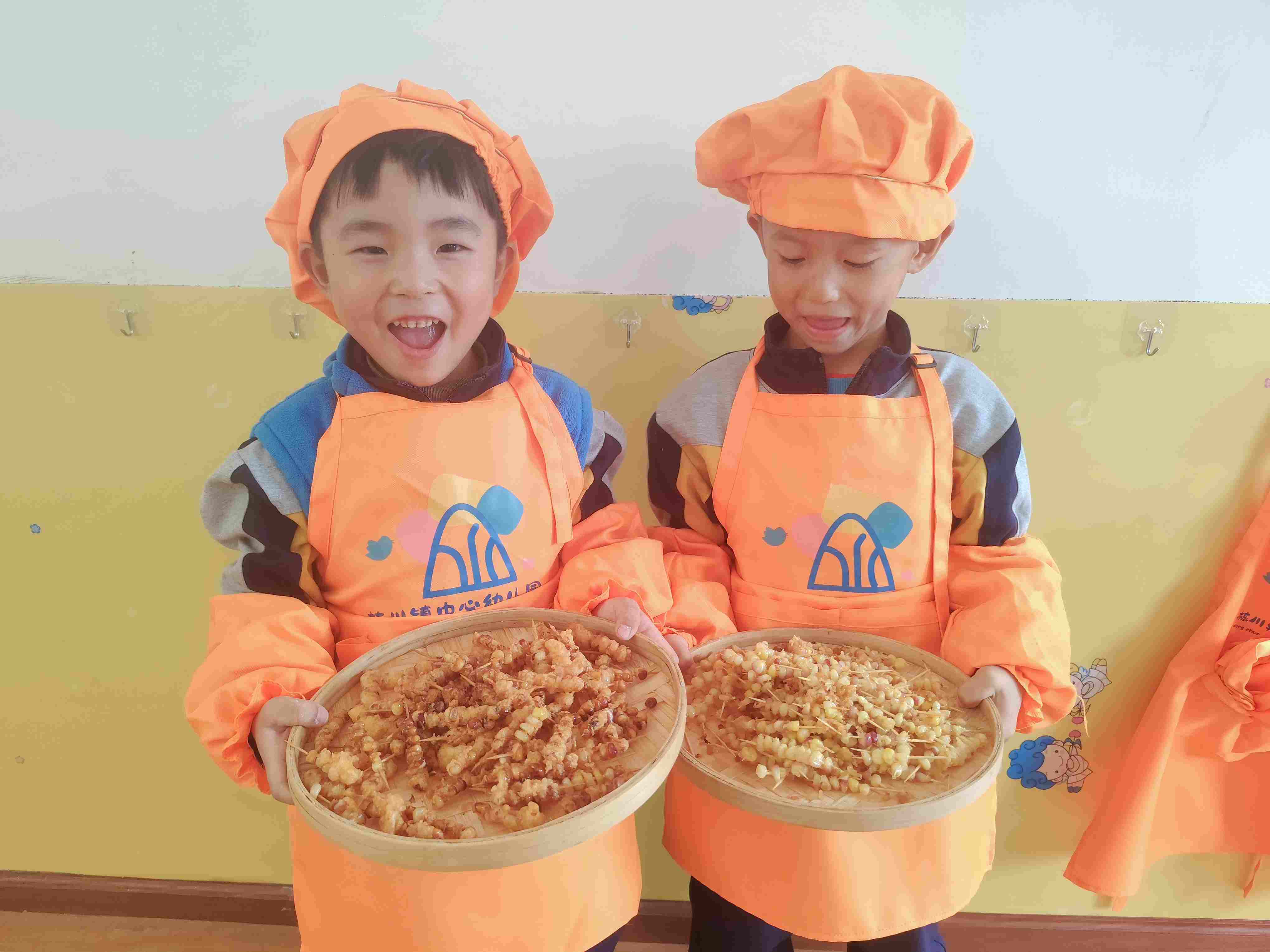 烤玉米区域更是热闹非凡,老师将处理好的玉米串在竹签上,放在烤架上慢慢烤制,并不时翻动。孩子们围在旁边,目不转睛地看着,还时不时地问:“老师,玉米什么时候能好呀?”当烤玉米的香气弥漫开来,老师将烤好的玉米分给孩子们,孩子们拿着热乎乎的烤玉米,小心翼翼地咬了一口,香甜的味道在口中散开,脸上露出了幸福的笑容。