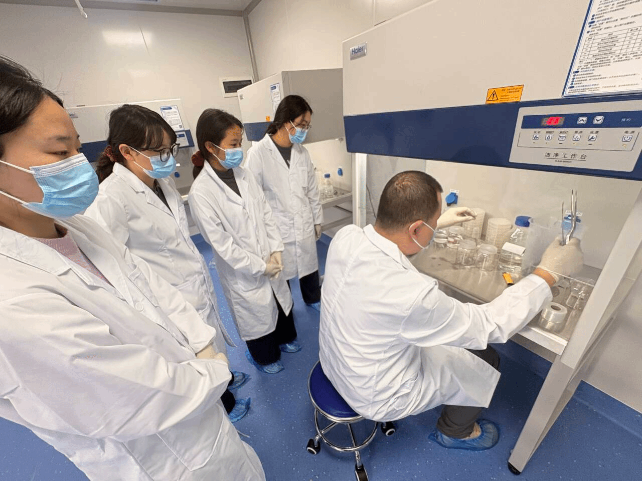 双方精选市场热门月季品种,以当年生健壮半木质化枝条的腋芽为外植体,共同搭建“高校实验室+产业学院实训基地”的双轨培养平台,开始了第一次初代培养。 培训负责人细致讲解每一步实验操作流程及原理,从实验方案设计、培养基配方优化到关键技术指导,培训的职中教师们认真学习,职中祁老师说:“我们要把每一个技术细节都学会,才能更好地带着我们的职中学生来实验室开展课程。”