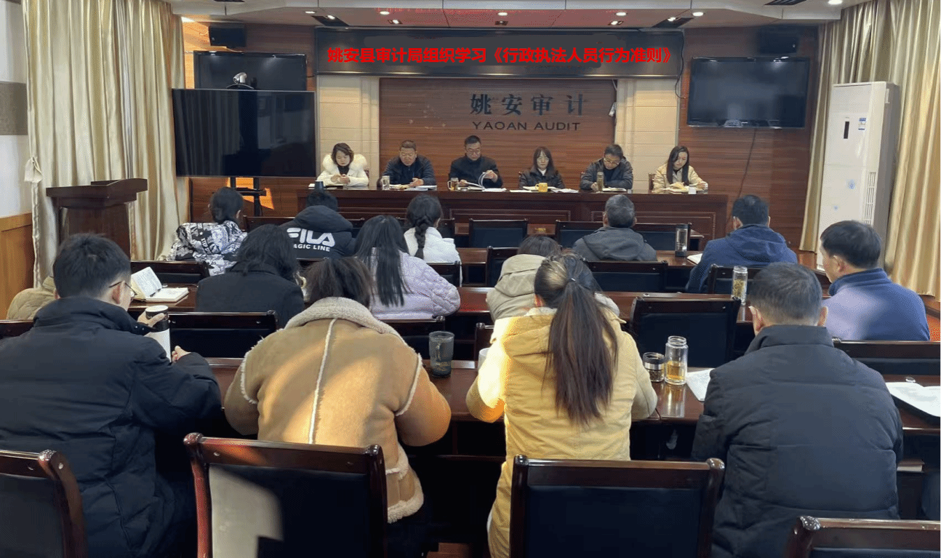 近日,姚安县审计局为进一步巩固常态化学法用法活动,及时组织全体审计干部集中深入学习《行政执法人员行为准则》《云审行政执法程序规定》等有关法律法规,持续深入贯彻习近平法治思想,规范审计执法行为,不断提升审计执法水平,为推进全县经济社会高质量发展发挥审计建设性作用。