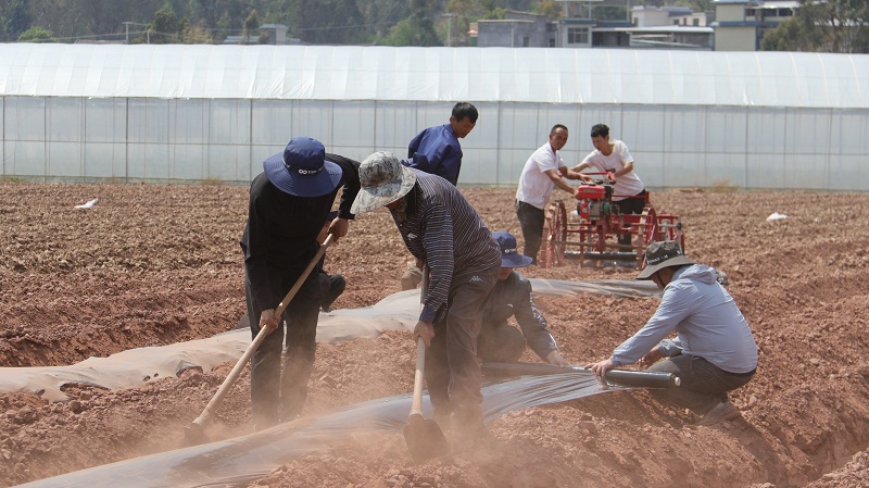 烟草公司副经理陈友福向大家讲解了膜下小苗移栽技术要点、优势及种后管护方法,并现场进行了演示。同时对深耕机、覆膜机、起垄打塘机三种农机机械的功能,以及打塘移栽、机械化覆膜、塘土堆捂备耕等情况进行了介绍。