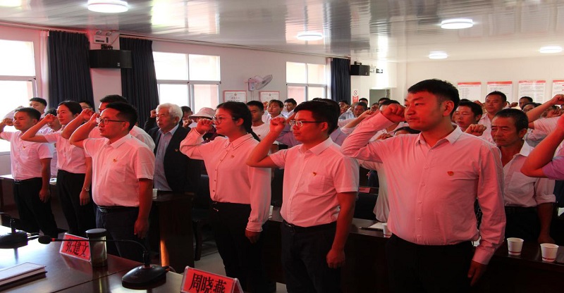 会议分两个阶段进行。第一阶段由乡党委书记申光著带领全体党员重温入党誓词。