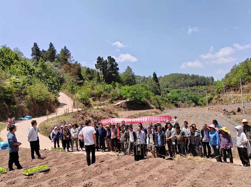 在烤烟移栽会现场,烤烟生产技术辅导员进行了现场培训,就移栽、配药、覆膜等环节种植技术进行了详尽的讲解和现场操作示范。