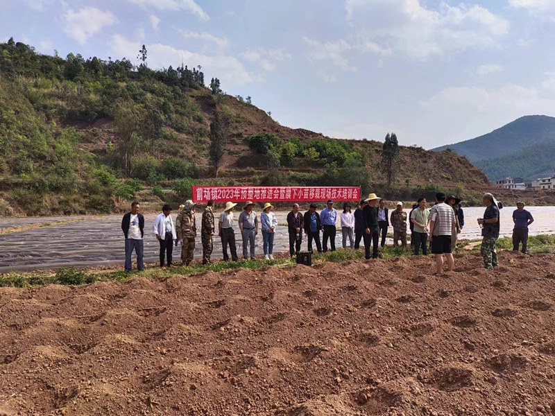 4月20日,前场镇召开2023年烤烟预整地暨膜下小苗移栽现场会。
