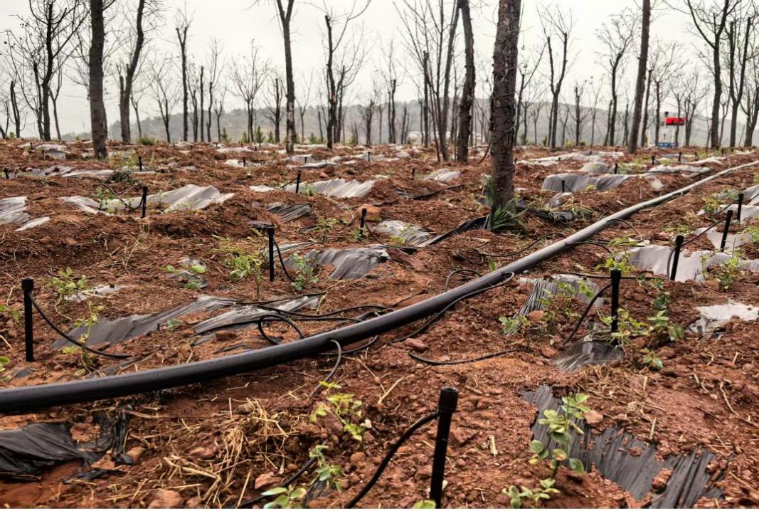 在弥兴镇3000余亩的国家储备林基地,一块约220亩的林地被用作林下种植可食用玫瑰的试验田,农户们正忙着将土壤堆积成垄,种下滇红玫瑰苗。玫瑰苗和松树相依相衬,将于今年5月前后进入盛花期。