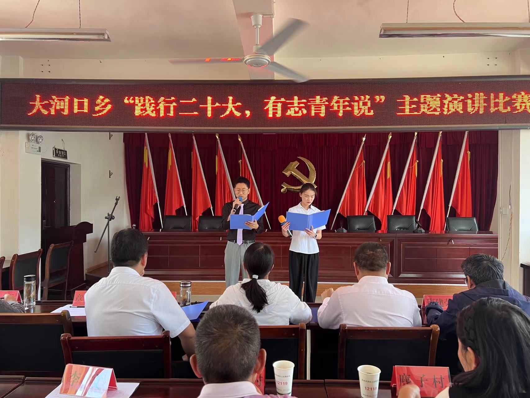 为庆祝中国共产主义青年团成立101周年,弘扬“五四”精神,全面贯彻党的二十大精神,凝聚青年干事创业热情,大河口乡团委组织开展“践行党的二十大,有志青年说”主题演讲比赛,引导青年干部凝心聚力,砥砺奋进,用青春书写华彩篇章。
