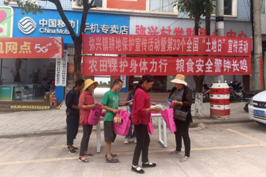 为了让广大群众认识到保护耕地的重要性和违法占用耕地的危害性,增强守住耕地红线、保护粮食安全的意识,弥兴镇人大主席团充分发挥代表密切联系群众的优势,组织各级人大代表进村入户,深入田间地头、密集走访群众,与群众交流,了解群众耕地种植利用情况,积极宣传国家的耕地保护制度和相关政策,积极引导群众从事粮食生产。同时,通过微信转发推送、发放宣传资料、悬挂标语横幅等多种形式广泛宣传,将党和国家的政策宣传到千家万户,凝聚全镇同心同向力量,营造良好的舆论环境和工作氛围。