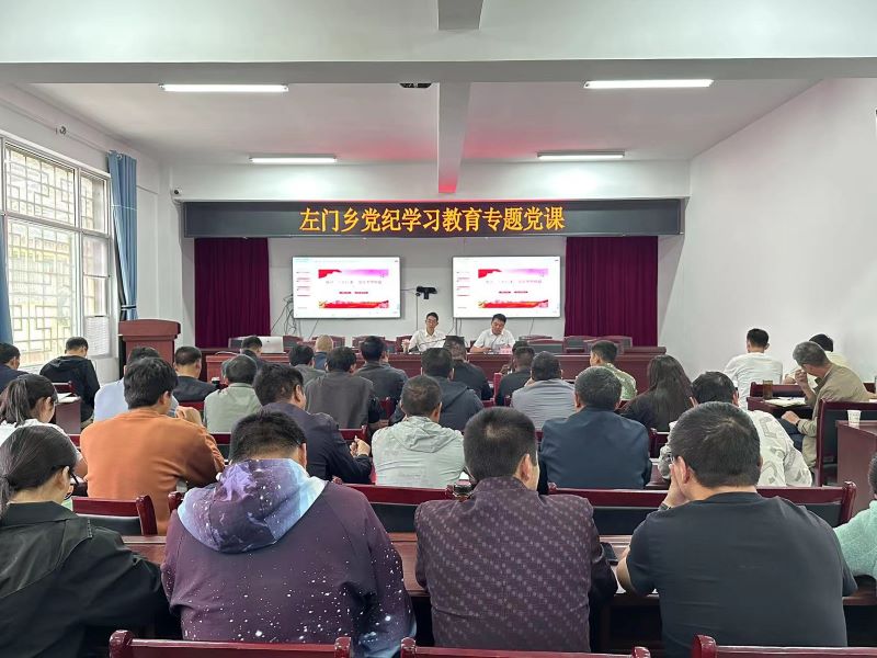6月17日,左门乡开展党纪学习教育专题党课,乡党委书记李祥以《恪守“六大纪律”筑牢思想根基》为题讲授专题党课并开展集体廉政谈话,乡全体干部职工、各村党组织书记、副书记、村务监督委员会主任等50余人参加会议。