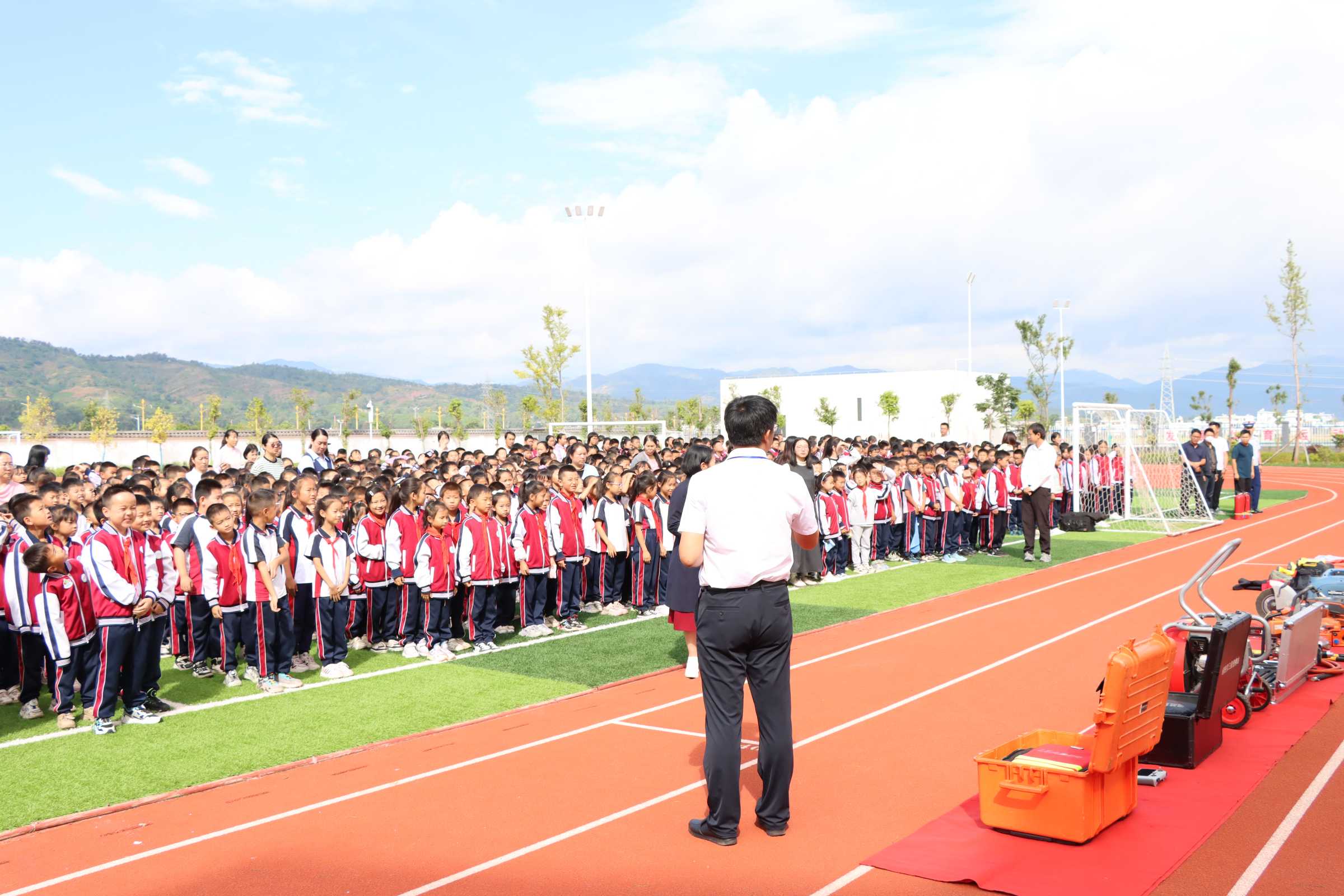 为提高学生消防安全意识,增强学生消防突发事件的逃生、自救能力,确保学校应急工作机制快速、高效有序进行,确保师生生命安全,9月27日上午,全县中小学、幼儿园校长、学校安全工作负责人100余人在栋川小学召开2024年消防安全标准化现场推进会,姚安县消防应急救援大队担任技术指导,到现场观摩学习,姚安县教育体育局有关负责同志参加此次会议。