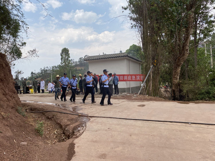 为切实做好防灾减灾救灾工作,提高对地质灾害防灾避险应急处置的快速反应能力,确保群众的生命财产安全,5月11日,弥兴镇组织相关人员到辖区内地质灾害点进行地质灾害临灾避险、防汛抗旱演练、抗震救灾等综合演练。并对村民进行地质灾害紧急避险知识宣讲。镇国土所、派出所、卫生院、弥兴镇民兵应急排、林业站人员等75人参加。镇党委书记周吉才同志担任演练指挥长。