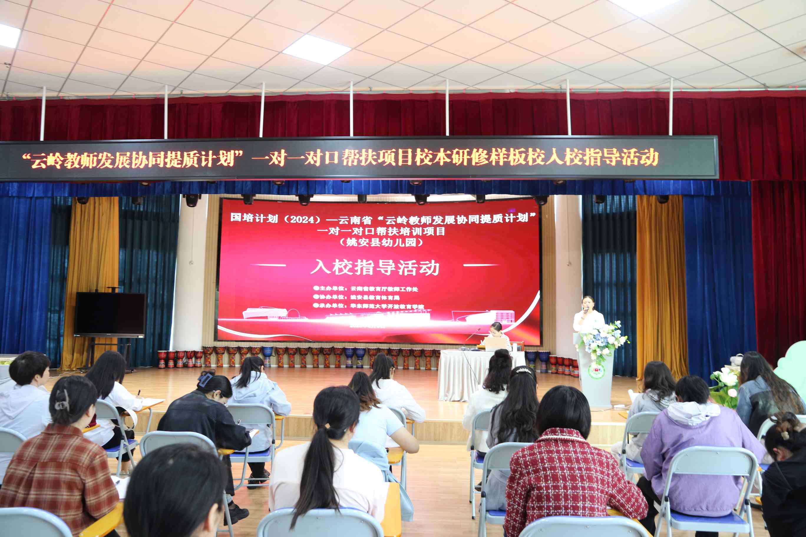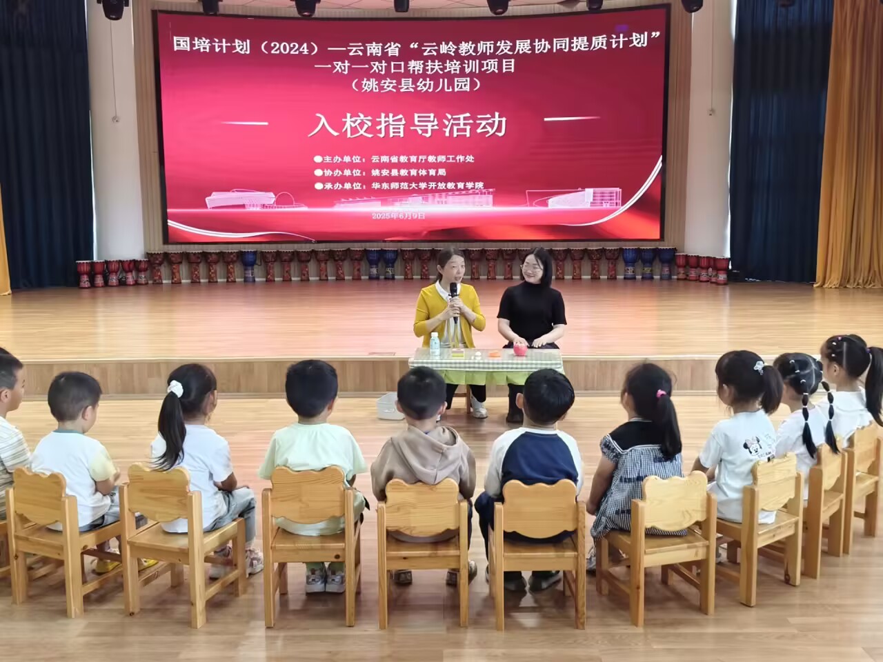 为深入贯彻落实《3-6岁儿童学习与发展指南》精神,提升教师专业素养,推动优质教育资源向欠发达地区辐射。2025年6月9日至12日,姚安县幼儿园迎来了国培计划(2024)——云南省“云岭教师发展协同提质计划”一对一对口帮扶培训项目的校本研修样板校第二阶段入校指导活动。湖南省株洲市芦淞教育幼稚园园长肖瑛一行4名专家莅临指导。