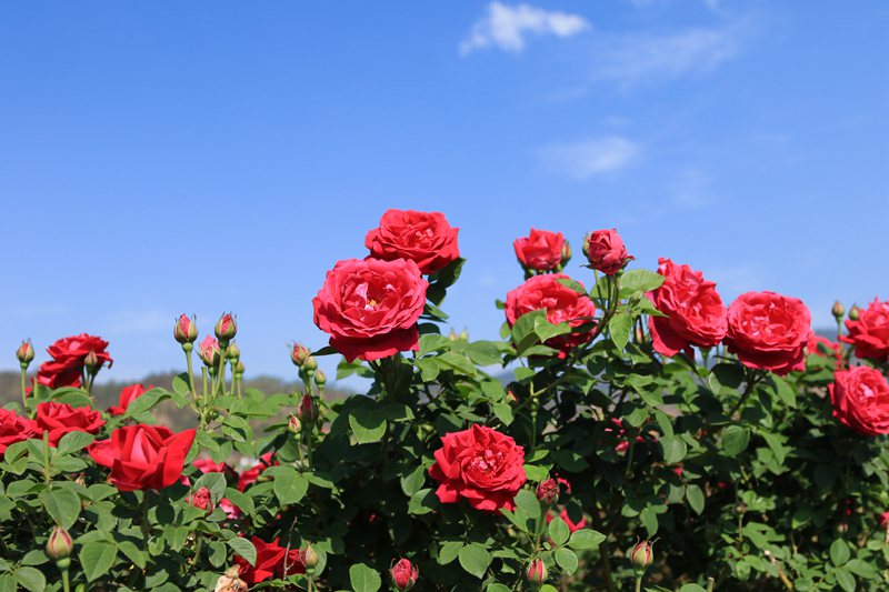 在4—5月玫瑰花季到来时,漫山遍野的各色玫瑰娇艳欲滴,漫游花海,步步流香。欣赏玫瑰美景的最佳时间是清晨,此时,花田里花团锦簇,香溢四野,整个山谷弥漫着沁人心脾的芬芳。漫山遍野的玫瑰展现在眼前,绿叶红花,像一幅美丽的画卷展开在蓝天下,穿行其间,浓郁的花香,令人陶醉、痴迷。