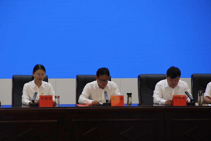 县人民政府县长林帮荣主持会议,县委常委、县人大、县政协领导出席会议。(张国金/文 郑兵/图)
