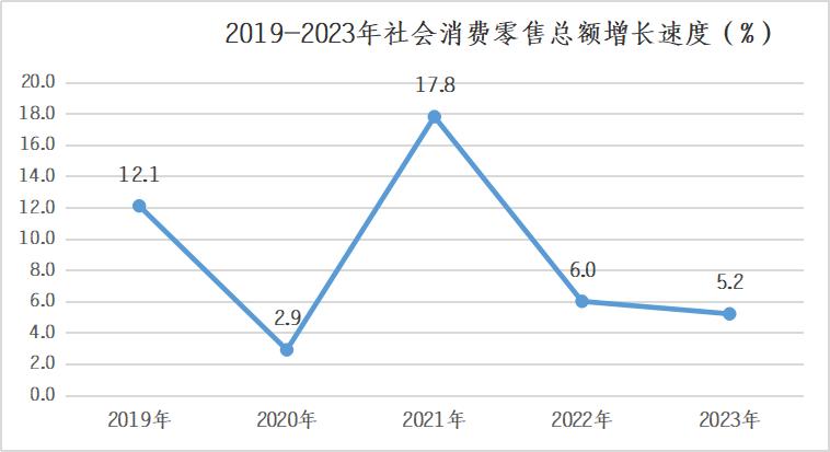 市场销售稳定增长。全年社会消费品零售总额40.5亿元,比上年增长5.2%。