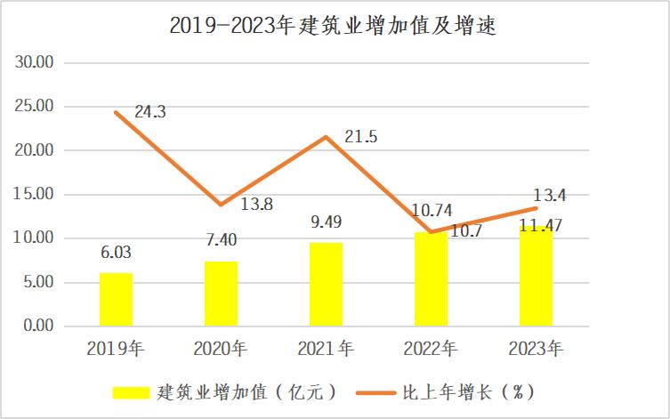 全县资质内本地建筑业企业完成建筑业总产值53.59亿元,比上年增长20.05%;全年建筑业实现增加值11.47亿元,比上年增长13.4%。