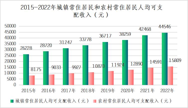 农村常住居民人均可支配收入15809元,比上年增加1218元,增长8.3%。农村常住居民人均消费支出13010元,比上年增加1030元,增长8.6%。