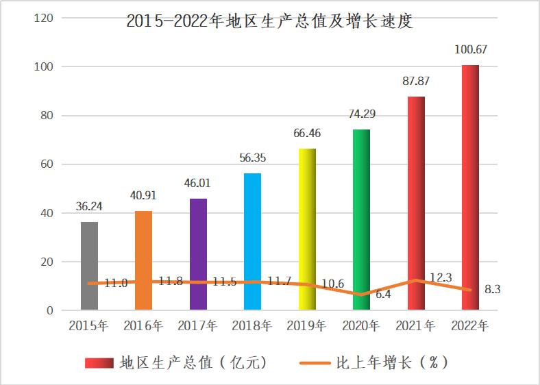 根据地区生产总值统一核算结果,2022年姚安县实现地区生产总值为100.67亿元,按可比价计算(下同),同比增长8.3%,增幅比全国(3%)高5.3个百分点,比全省(4.3%)高4个百分点,比全州(6.7%)高1.6个百分点,增速居全州十县市第2位,按全县常住人口计算人均GDP达62236元,同比增长9.3%,县域经济发展实现“经济总量超百亿元和结构由“三一二”到“三二一”的两大历史性突破,经济运行持续平稳向好发展。