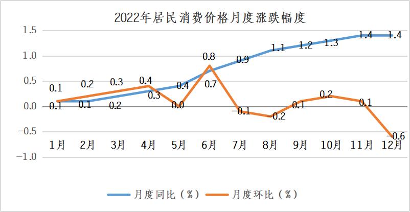 市场物价持续上涨。2022年全年居民消费价格总水平比上年上涨1.4%,其中:食品类下降0.6%。商品零售价格总水平比上年上涨2.0%。