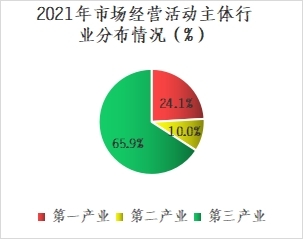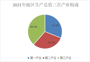 从三次产业看:第一产业实现增加值为27.26亿元,同比增长9.0%,增幅与全州(9.0%)持平,低于元谋、牟定,与楚雄、禄丰、南华、永仁、武定并居全州十县市第三位,对全县经济增长的贡献率为23.2%,拉动经济增长2.9个百分点。第二产业实现增加值为26.75亿元,同比增长19.9%,增幅比全州(13.9%)高6.0个百分点,居全州十县市第二位,对全县经济增长的贡献率为44.5%,拉动经济增长5.4个百分点。第三产业实现增加值为33.86亿元,同比增长9.7%,增幅比全州(9.5%)低0.2个百分点,居全州十县市第七位,对全县经济增长的贡献率为32.3%,拉动经济增长4个百分点。经济结构进一步优化,三次产业的结构由2020年的31.6:27.6:40.8调整为2021年的31:30.5:38.5。