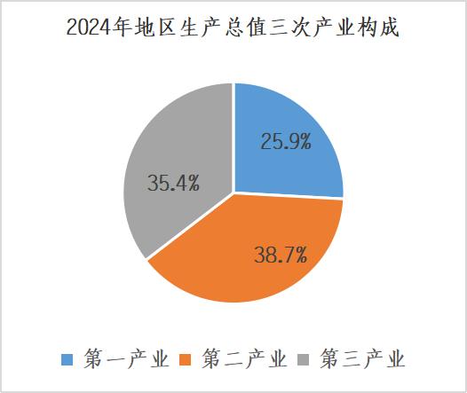 从三次产业看:第一产业实现增加值为30.67亿元,同比增长2.2%,增幅比全州(2.5%)低0.3个百分点,居全州十县市末位,对全县经济增长的贡献率为16.5%,拉动姚安经济增长0.58个百分点。第二产业实现增加值为45.88亿元,同比增长3.9%,增幅比全州(-0.2%)高4.1个百分点,居全州十县市第四位,对全县经济增长的贡献率为42.9%,拉动姚安经济增长1.5个百分点。第三产业实现增加值为41.99亿元,同比增长4.0%,增幅比全州(5.4%)低1.4个百分点,居全州十县市第七位,对全县经济增长的贡献率为40.6%,拉动姚安经济增长1.42个百分点。经济结构进一步优化,三次产业结构由2023年的30.0:33.6:36.4调整到2024年的25.9 : 38.7 : 35.4。