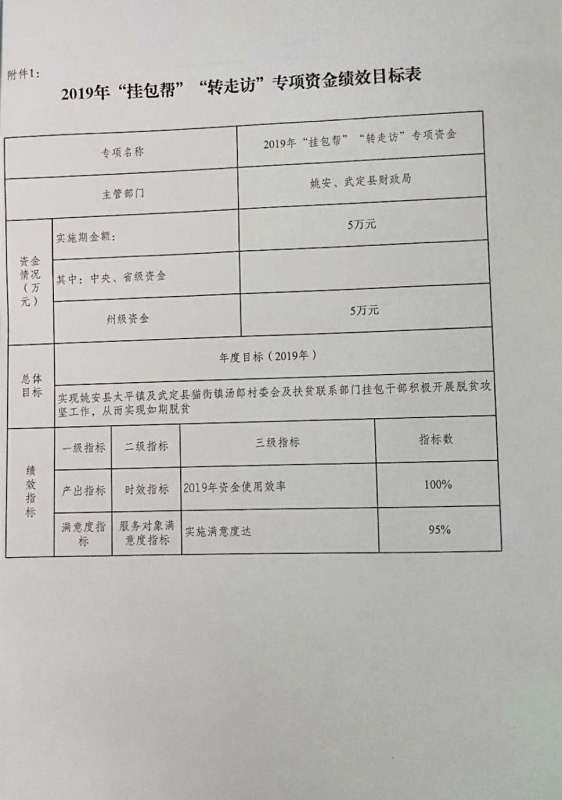 附件:2019年“挂包帮”“转走访”专项资金绩效目标表 (如下)