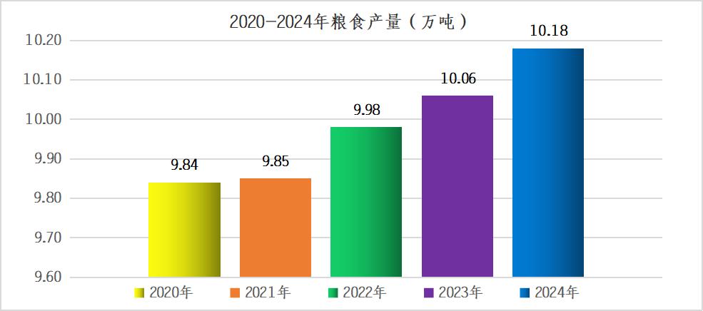 粮食再获丰收。全年粮食产量10.18万吨,比上年增加1175吨,增产1.2%。