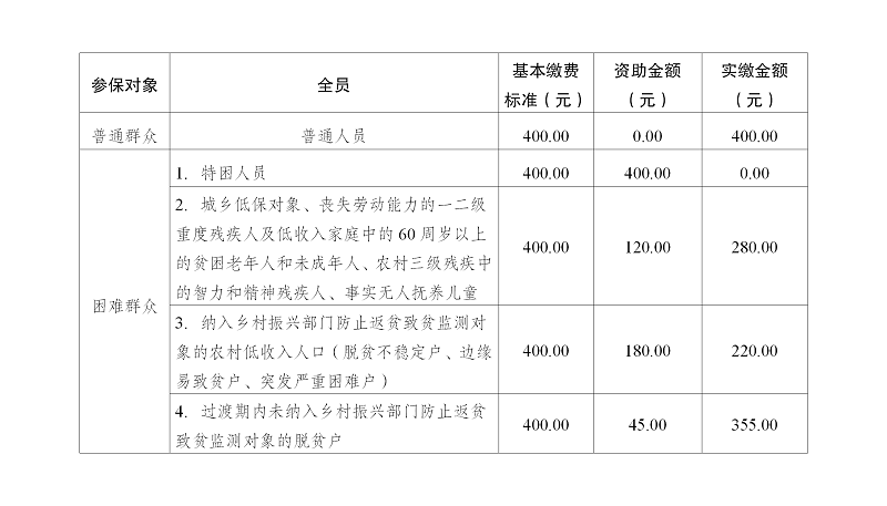 具体政策补贴及缴费标准如下: