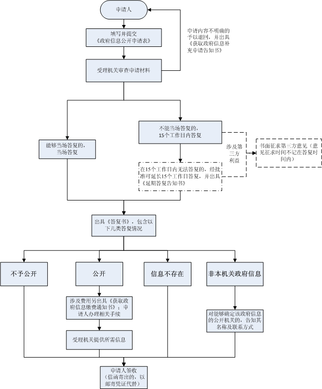 申请人可在受理点获取《政府信息公开申请表》(以下简称《申请表》,详见附件),也可在姚安县人民政府网站政府信息公开栏目下载(复制有效),向制作政府信息的行政机关提出申请。