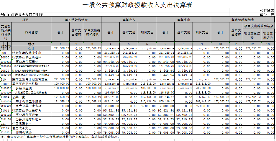 (详见附件:姚安县大龙口卫生院2017年度部门决算表 公开01表—公开09表)