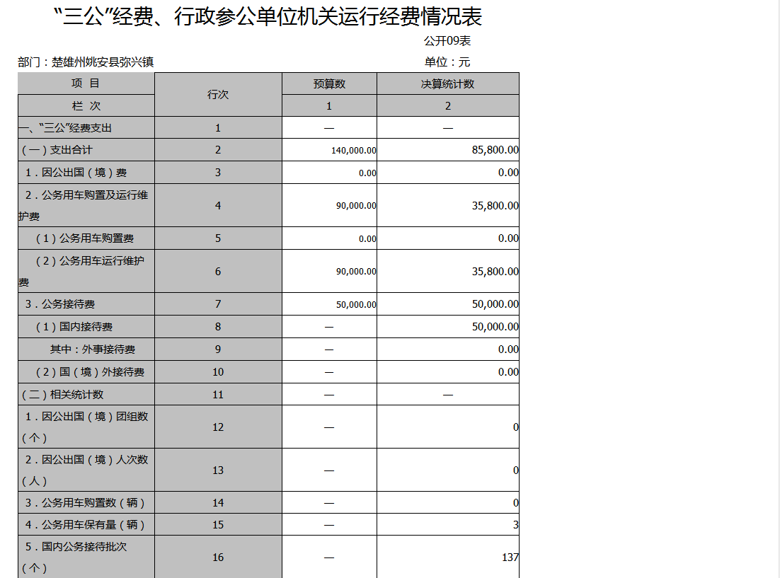 九、“三公”经费、行政参公单位机关运行经费情况表