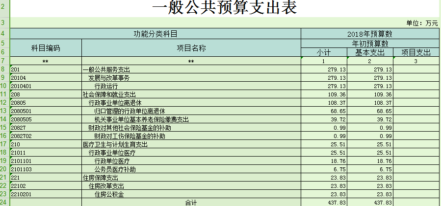 姚安县经济贸易和信息化局2018年财政拨款预算总收入 437.83万元,其中:本级财力437.83万元。2018年财政拨款预算总支出437.83万元,其中:基本支出437.83万元,占总支出的100%。