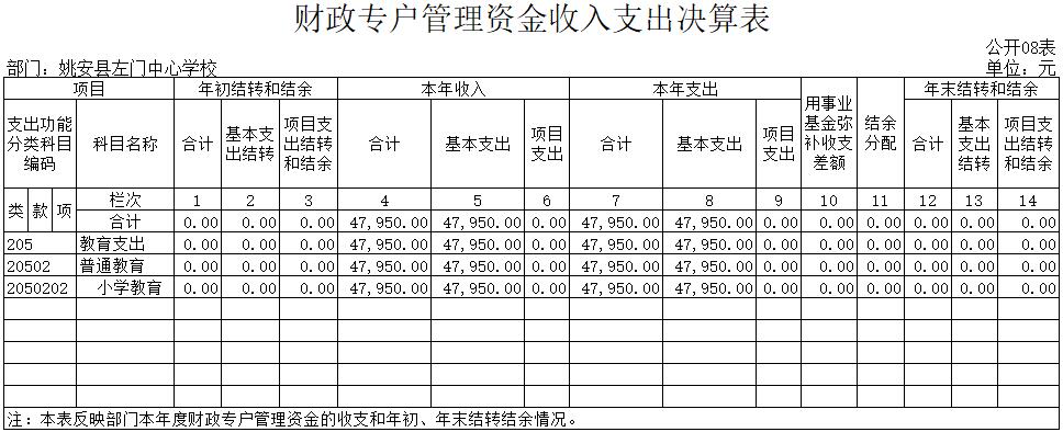 2017年一般公共预算财政拨款支出中,上年结转44.56万元,其中基本支出结转736.23万元,项目支出结转126.80万元;本年收入895.45万元,其中基本支出640.73万元,项目支出83.38万元、本年支出39330.47万元,其中基本支出691.68万元,项目支出564.88万元;本年年末结转和结余76.98万元,其中基本支出结转75.84万元,项目支出结转1.14万元。