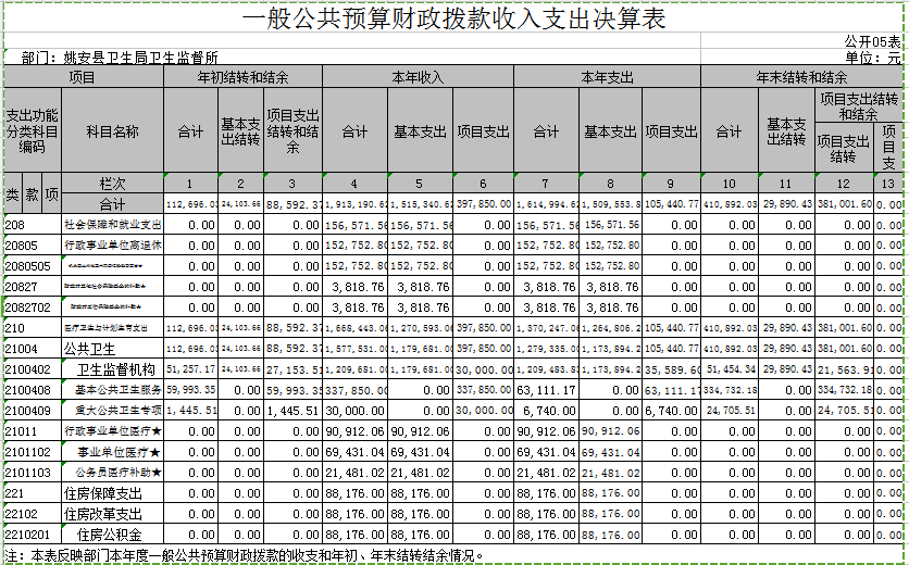 注: 本表反映部门本年度一般公共预算财政拨款和政府性基金预算财政拨款的总收支和年初、年末结转结余情况。 | |||||||