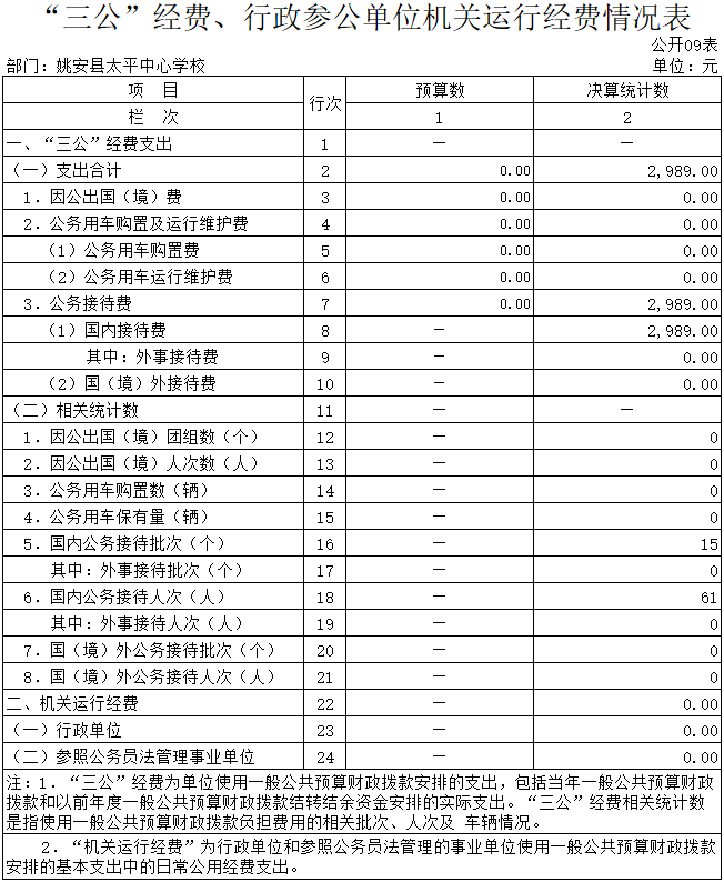 本年本单位没有因公出国(出境),公务用车购置及运行维护费0元,公务接待费用2989.00元。