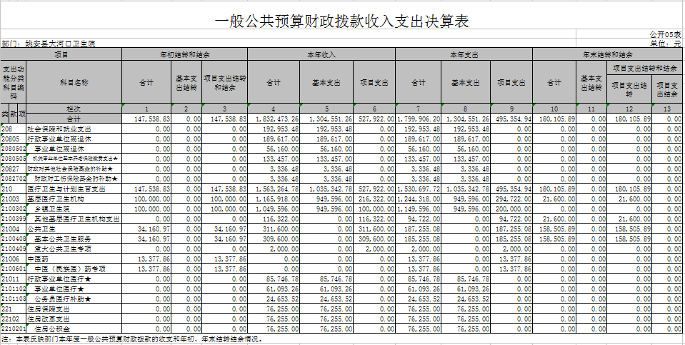(详见附件:姚安县大河口卫生院2017年度部门决算表 公开01表—公开09表)