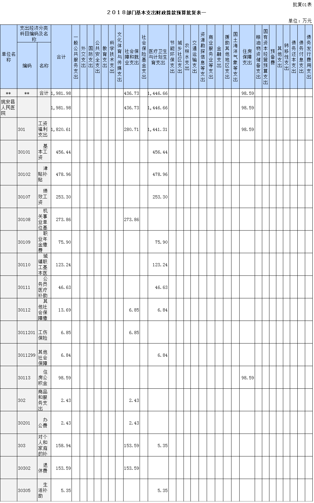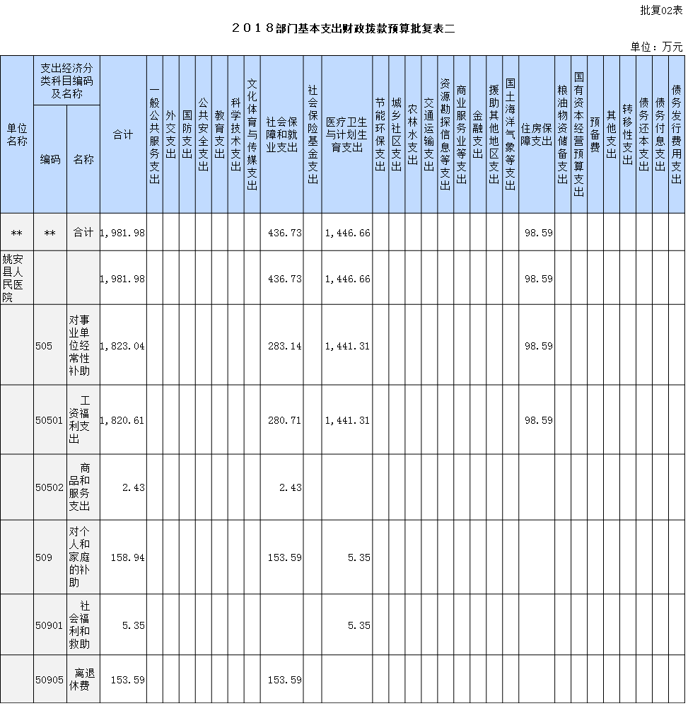 姚安县人民医院2018年部门预算相关表册