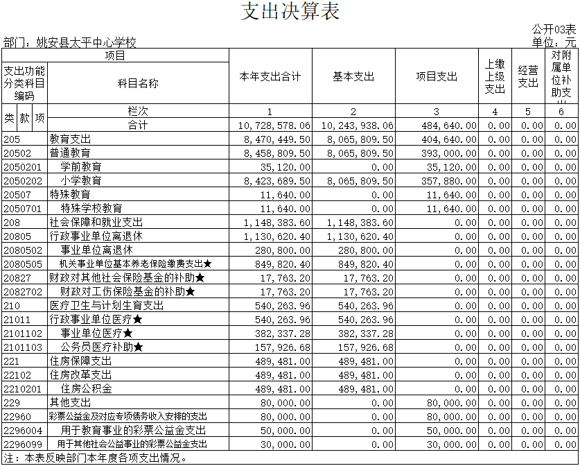 本年总支出为10728578.06元,其中,基本支出10243938.06元,项目支出484640.00元。
