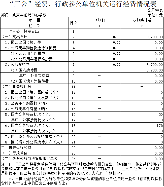 本年本单位没有因公出国(出境),公务用车购置及运行维护费0元,公务接待费用8700元。