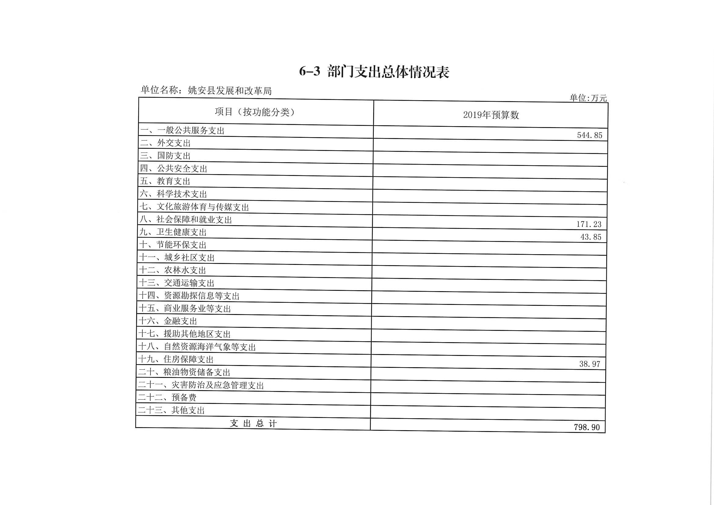 姚安县发展和改革局2019年预算公开