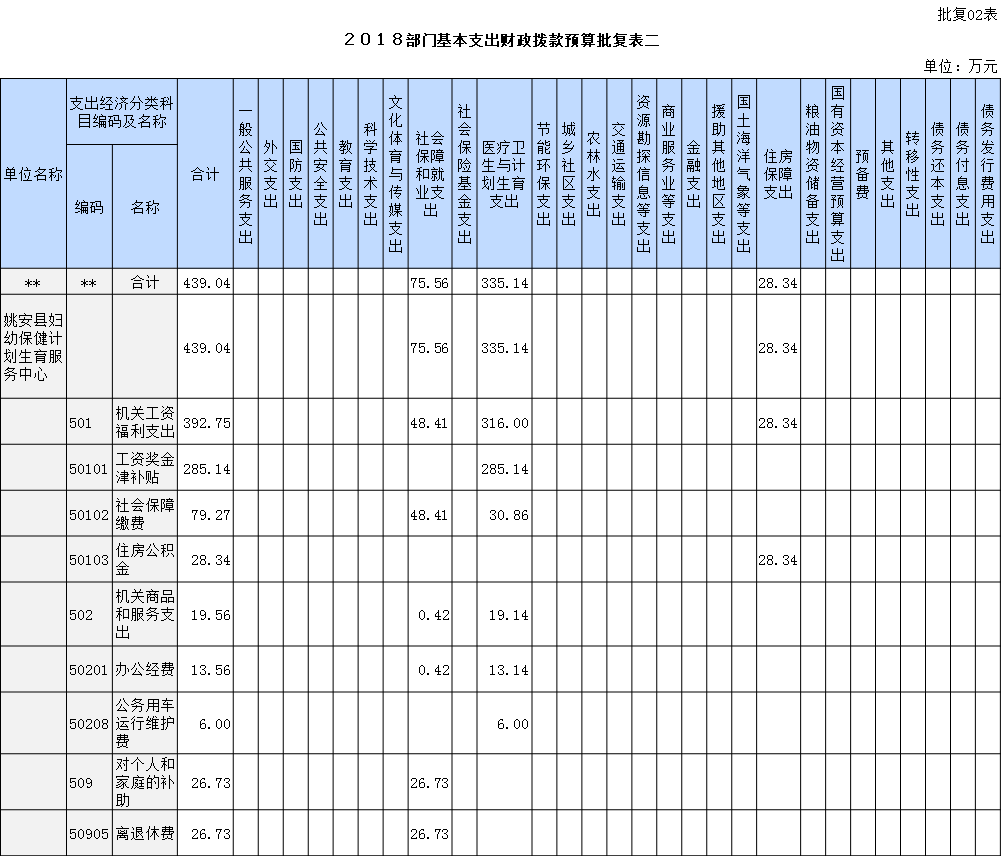 姚安县妇幼保健计划生育服务中心2018 部门预算相关表册