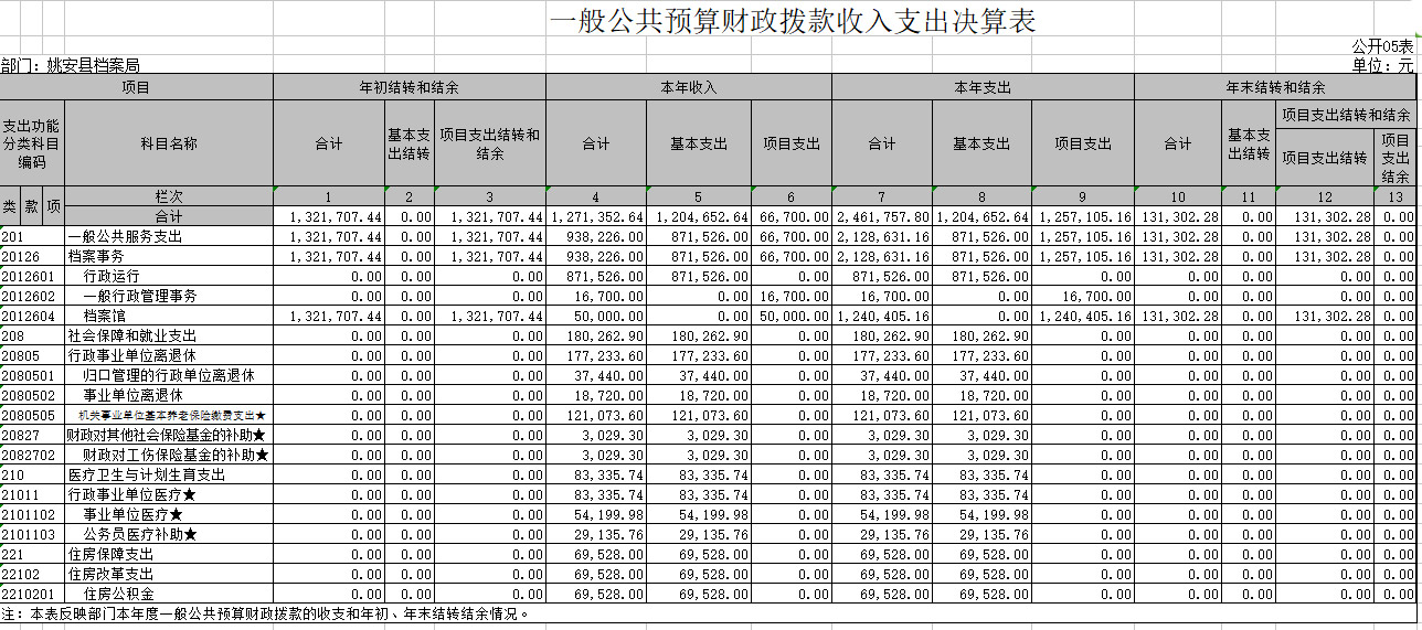 编制单位:姚安县档案局 | 单位:万元 | ||||||||||||||||