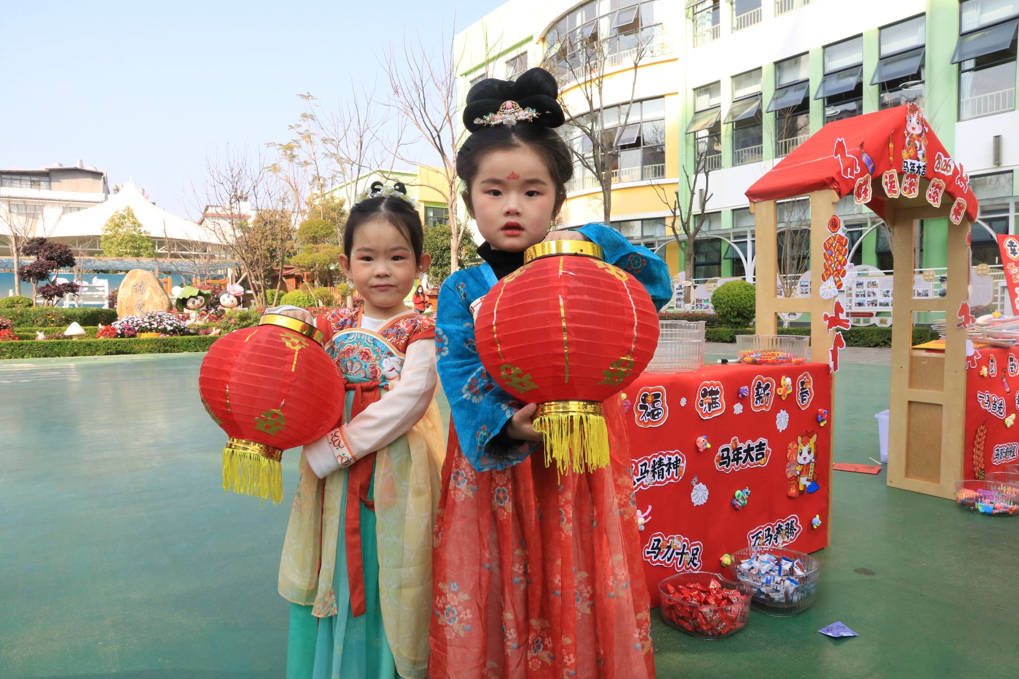 在2026年春季学期开学之际,一场以“逛庙会·扬传统·品年味”为主题的迎新游园活动在姚安县幼儿园热闹开启。本次活动将传统文化融入童趣体验,让孩子们在欢声笑语中感受中华民俗的独特魅力及新学期的活力。活动以家长带领孩子一起体验“逛庙会”摊位活动的形式展开,品花茶、制作糖葫芦、剪窗花、非遗拓印、投壶、吸福、抽盲袋等。庙会现场,年味十足。各班教师精心布置了特色摊位,孩子们手持游园卡,穿梭于各个体验区,沉浸式感受传统文化的温度。