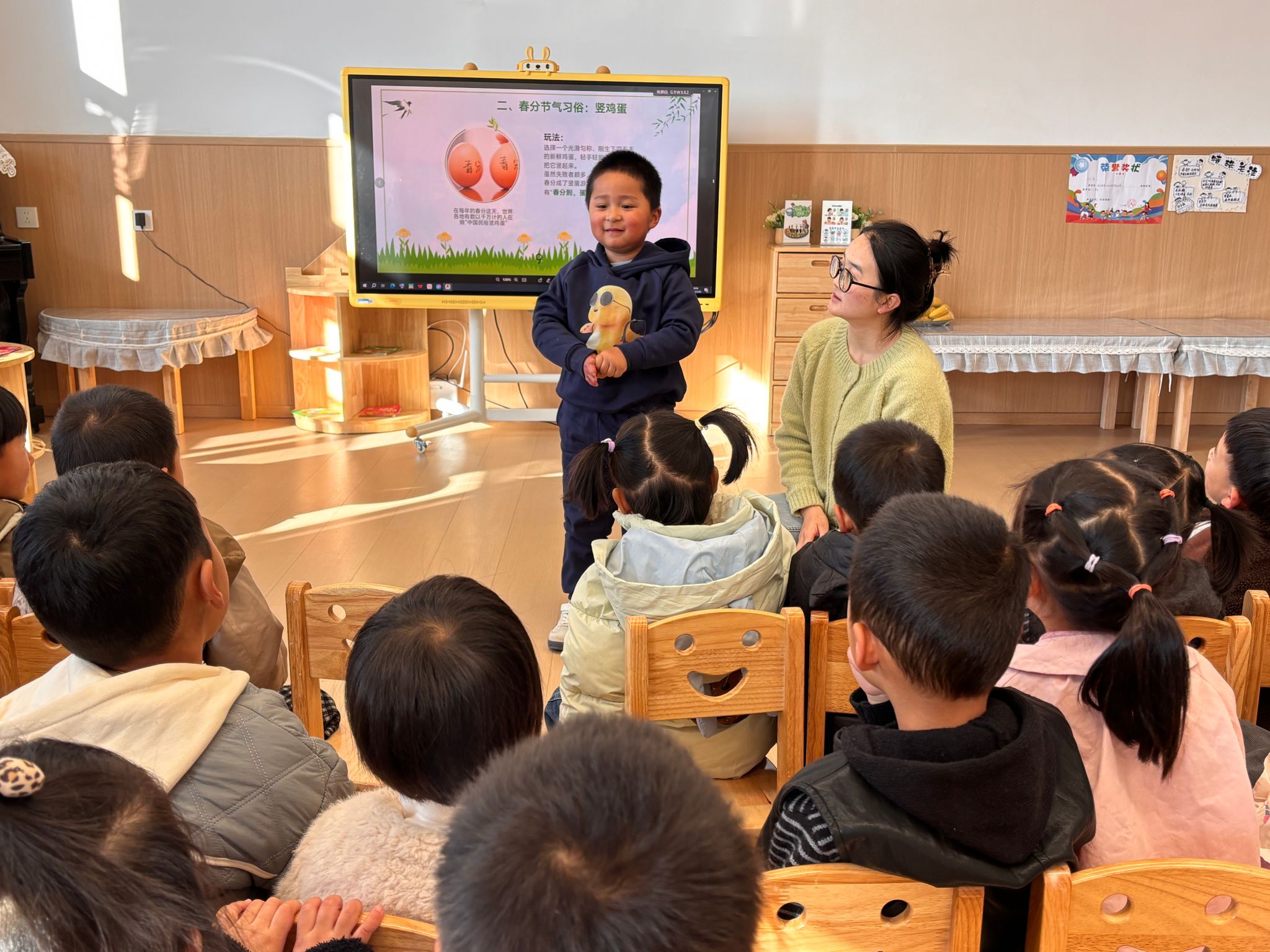 为传承节气文化,引导幼儿在自然中感知春天、在游戏中强健体魄,3月20日,姚安县第三幼儿园小班组开展了“沐春阳”主题系列活动。本次活动围绕“找春天”“春分小课堂”“沐春阳”“春分食趣”四个板块展开,将节气科普、阳光运动与健康饮食有机结合,让孩子们在春分这一天沉浸式感受春天的气息,收获健康与快乐。