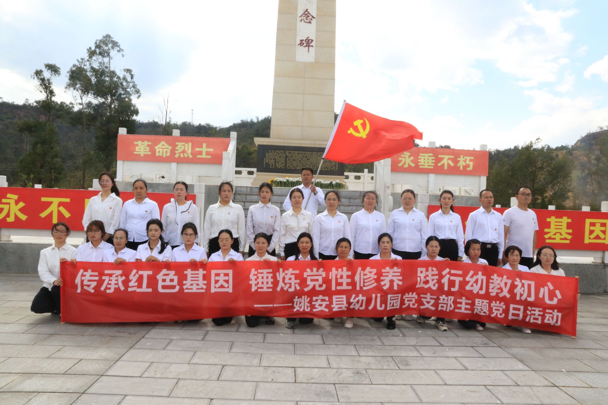 党支部组织全体党员和部分教师到姚安县烈士陵园开展祭英烈活动。通过重温入党誓词、书记讲党课、党员教师代表发言、瞻仰纪念碑等仪式,在革命烈士纪念碑前接受了一次深刻的精神洗礼。激励党员教师以先烈精神自勉,增强责任感和使命感,发挥先锋模范作用,以更加饱满的热情、更加坚定的信念,投身幼教事业,为培养担当民族复兴大任的时代新人贡献自己的力量!