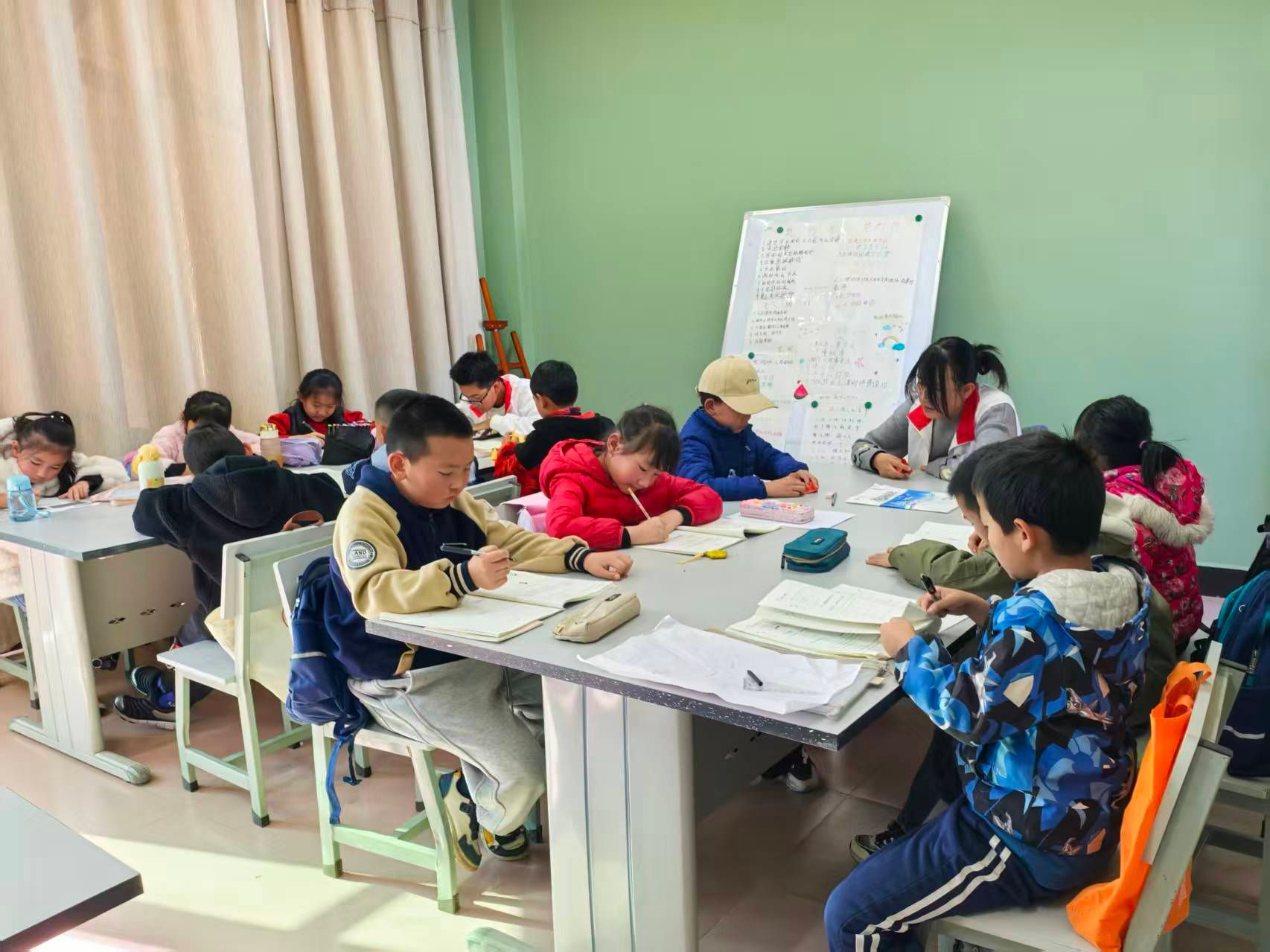 作为“书香姚安”建设的生动实践,县图书馆精心布置专属学习空间,并依托馆藏资源,配备少儿读物、科普图书与红色经典,由专业馆员引导阅读,帮助孩子养成良好的阅读习惯。同时,30名来自团县委的志愿者提供作业辅导、知识梳理等服务,融入了思想引领与安全教育内容。