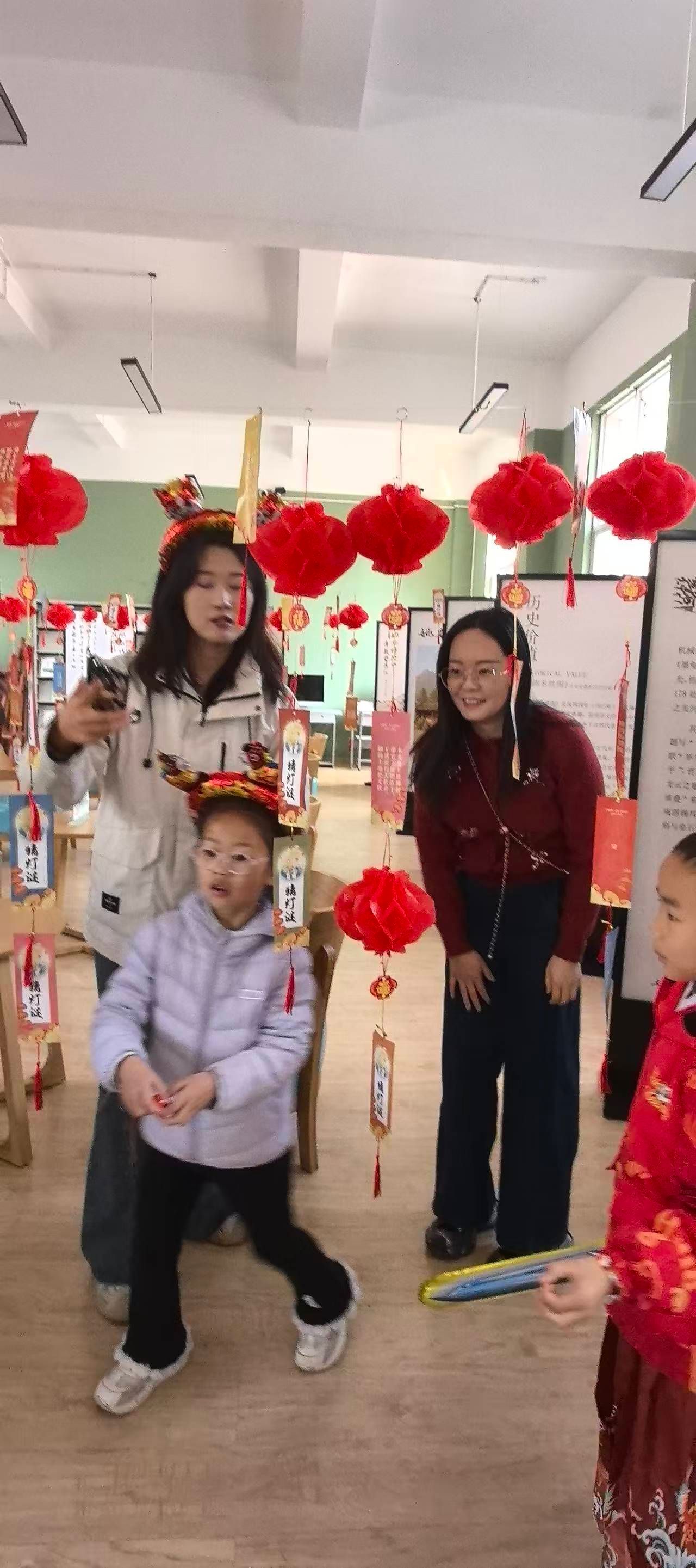 活动最后,猜灯谜环节将气氛推向高潮。一盏盏红灯笼下,趣味谜题吸引着孩子们踊跃抢答,大家在开动脑筋的同时,收获了满满的节日喜悦。